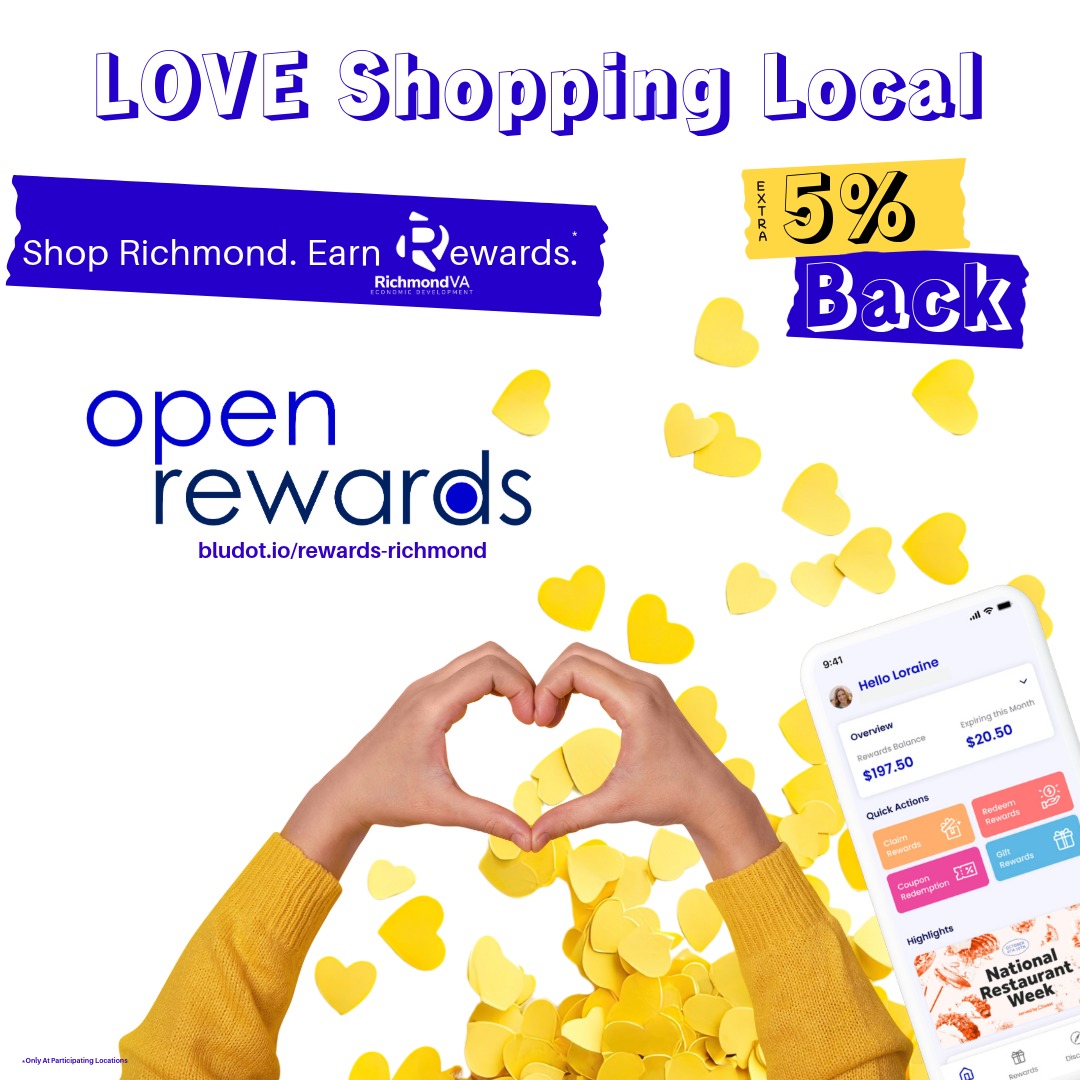 BluDot Open Rewards is Richmond’s pilot digital shop-local incentive program designed to help businesses increase foot traffic, engage customers, and encourage local spending during Love Shopping Local Week and beyond.